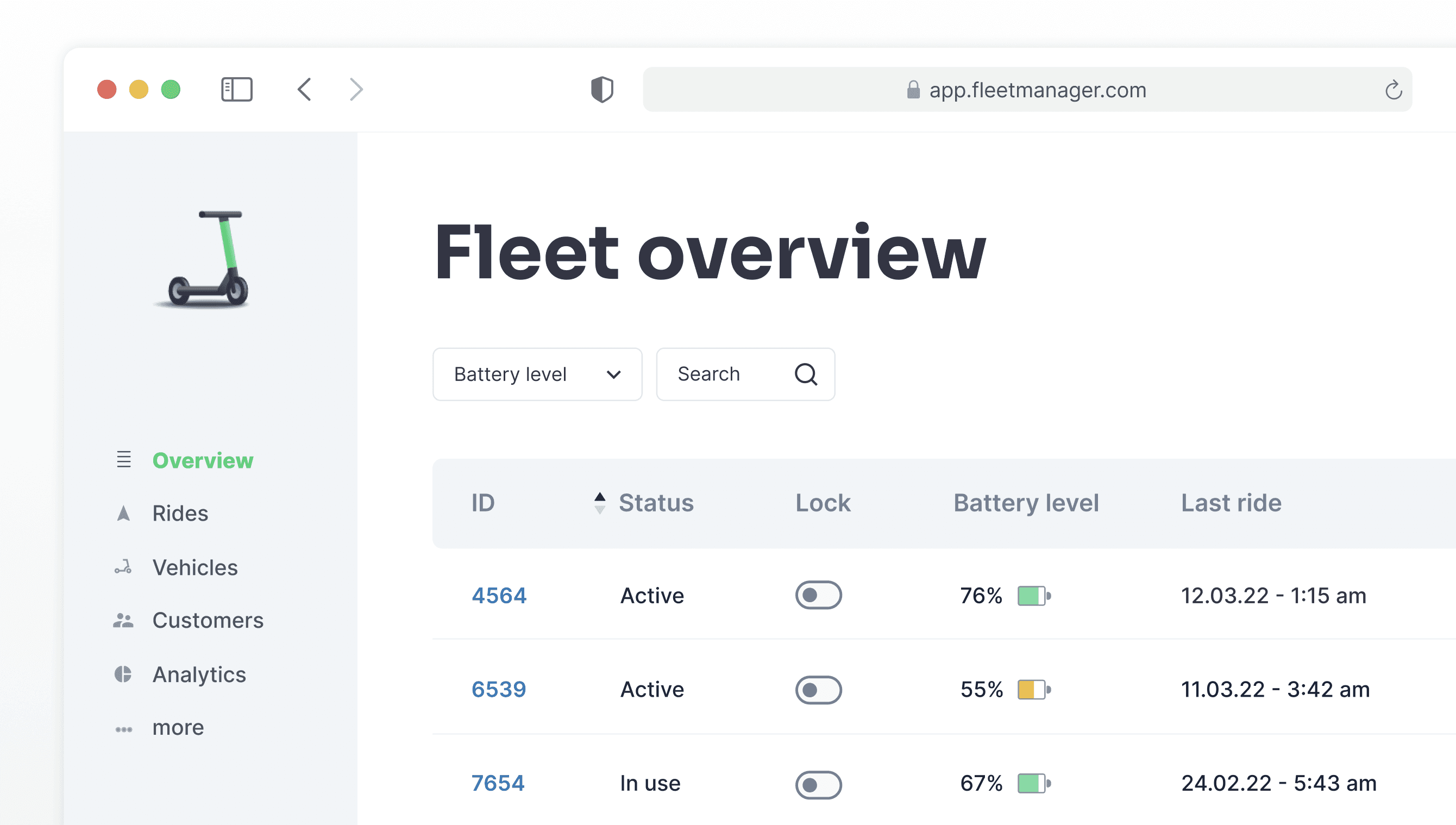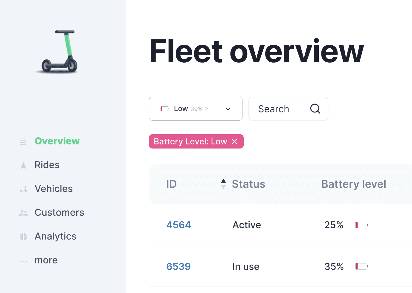 Customer experience is key for a ride sharing company. The interface for the fleet operators needs to reflect those values. Not only does it work well, it also is fun and easy to switch status of scooters or navigate on a map.